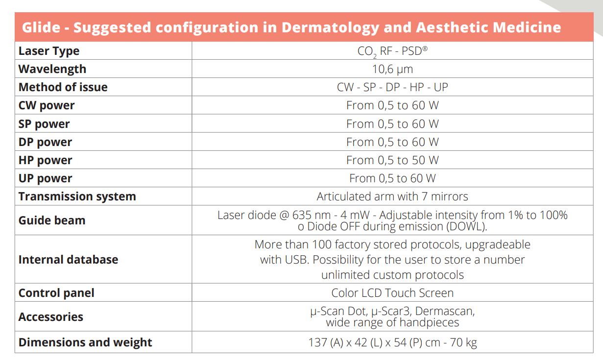 - μ-scan Dot για το skin resurfacing με δυνατότητα επιλογής παραμέτρων ,μέγεθος,εκταση ,και scanning της δέσμης